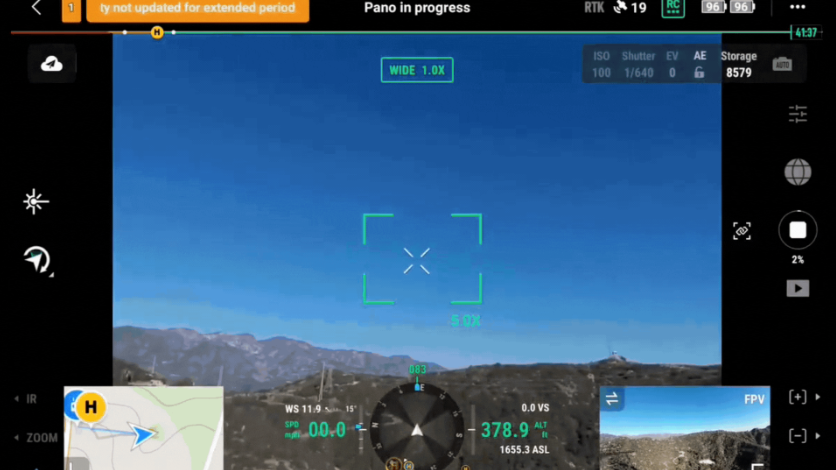 Updated high-resolution imagery of an area can be quickly generated through mapping with a drone by capturing overlapping imagery through an automated mission. This data capture can be planned in Pilot 2 and processed in FlightHub 2 (cloud-based solution) or DJI Terra (offline solution requiring a Windows computer with sufficient computing power). Although in a situation where time is critical, having a quick perspective of the current situation can be key for planning response efforts. That is where Panoramas bring many advantages to response teams including rapid capture of 360-degree information, small size (~30MB), geolocation to the capture location on the map, and the ability to be easily uploaded to map services like DJI FlightHub 2.
