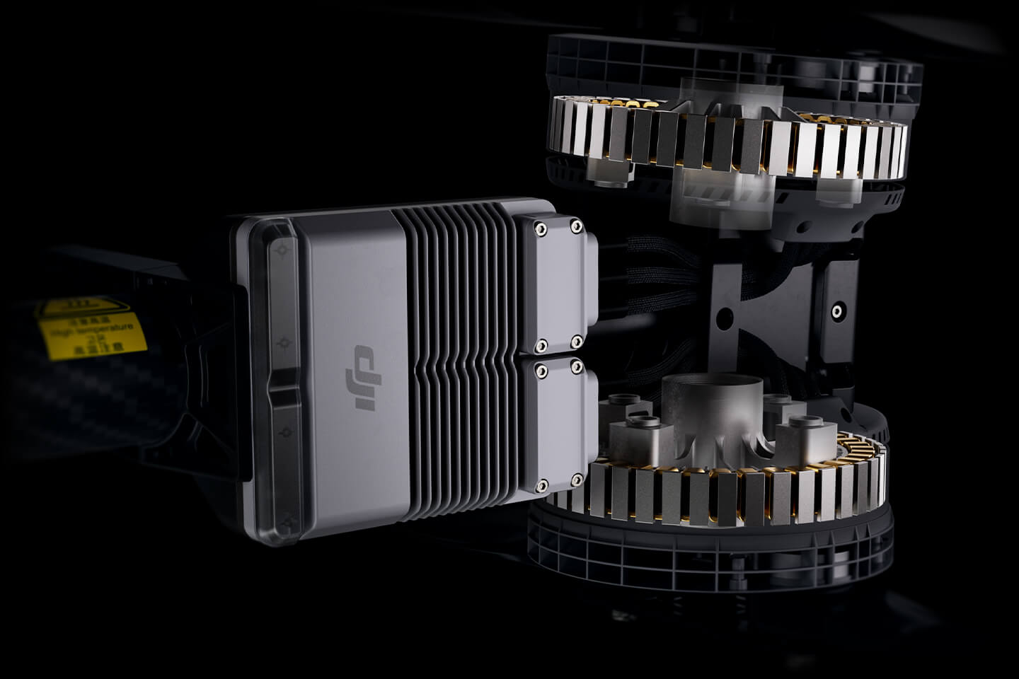 The DB2160 Intelligent Flight Battery has an increased capacity and lighter built, offering ultra fast charging while reducing fuel consumption. Its innovative triple air-channel cooling system disperses heat through airflow, ensuring safe and stable energy management with efficient cooling even during flight. (It varies between countries.)