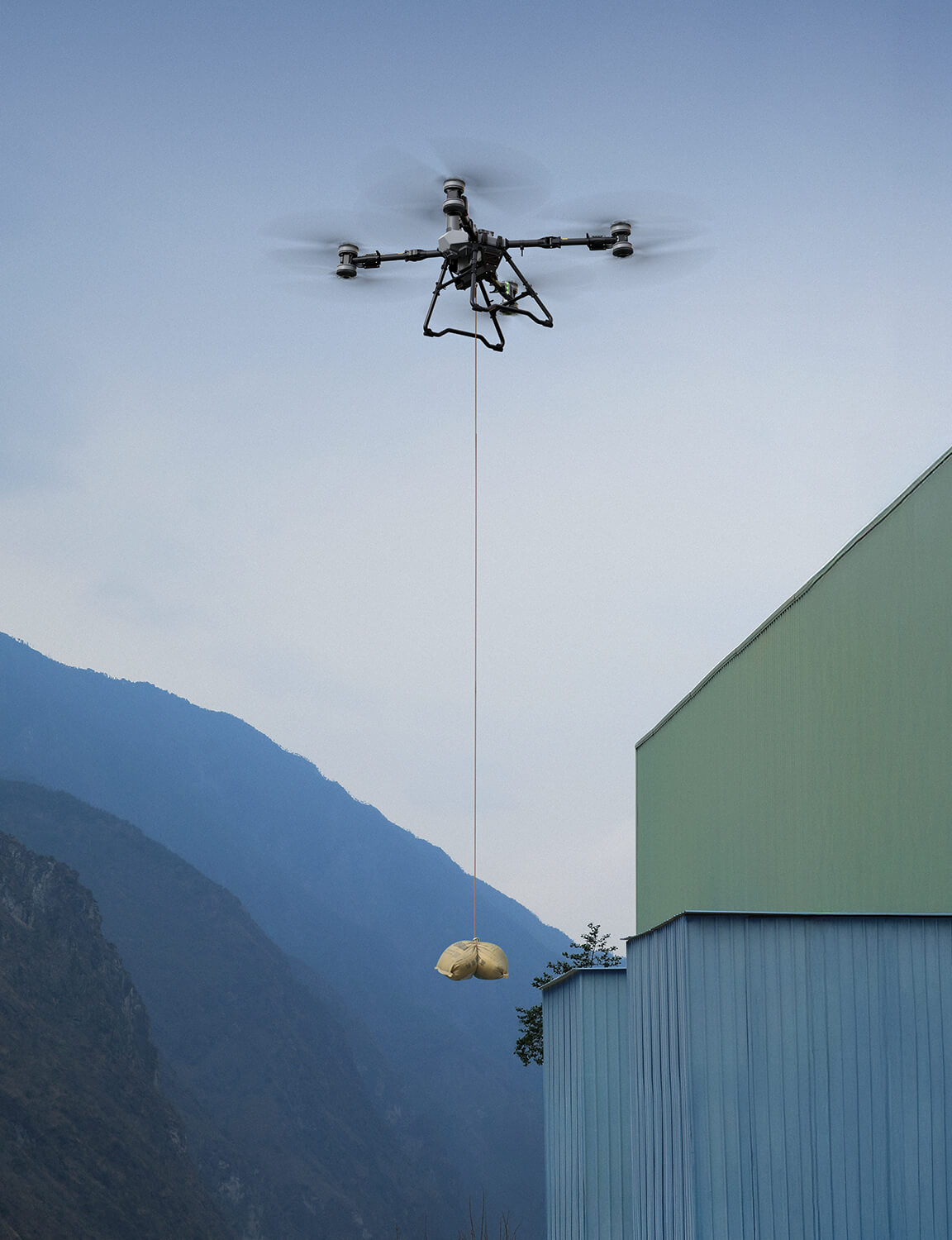 The optional dual battery version has a lifting capacity of 80kg[28], suitable for scenarios requiring long endurance. For extreme situations where hanging cargo gets trapped or tangled, you have the option to heat and cut the cable, freeing the drone.